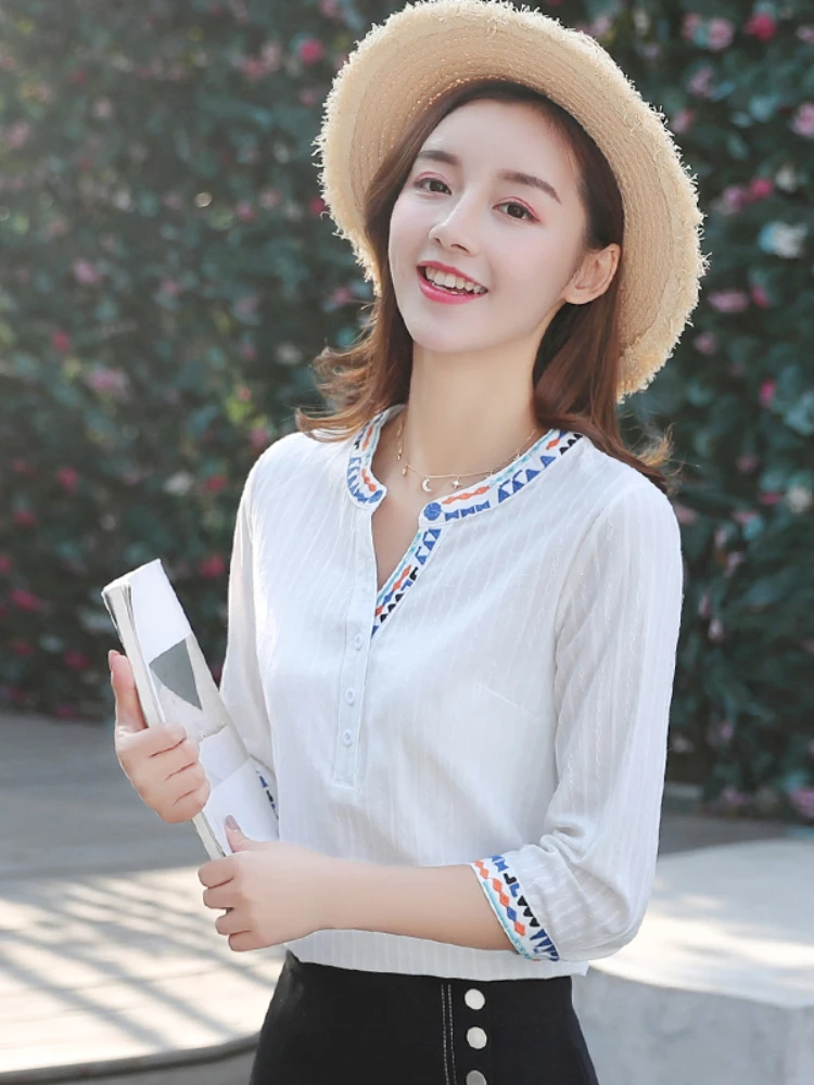 Stickerei Weiss Baumwolle Hemd 2022 Herbst Neue Mode Frauen Bluse Langarm Casual Tops Lose Hemd Arbeit Tragen Blusas Feminina