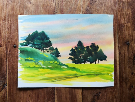 Landscape Watercolor Painting Original Art Landscape Paintings Watercolor Paintings Etsy Uk